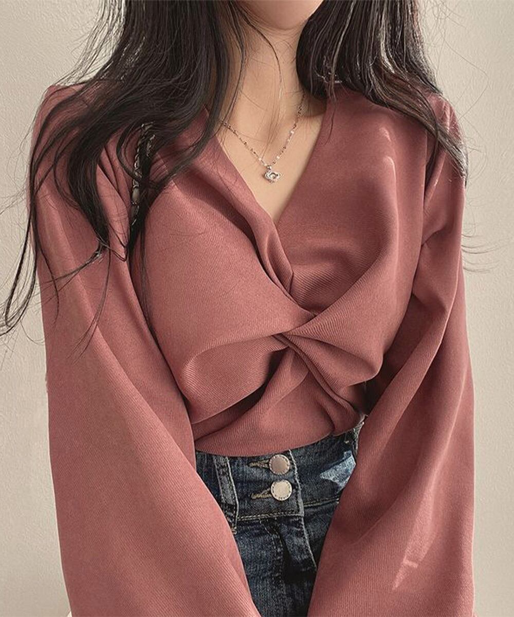 この新作★フロントねじり シャツブラウス Vネック★で、あなたの日常に特別なスタイルをプラスしてみませんか?エレガントなデザインと快適な着心地が融合した素晴らしいアイテムです!